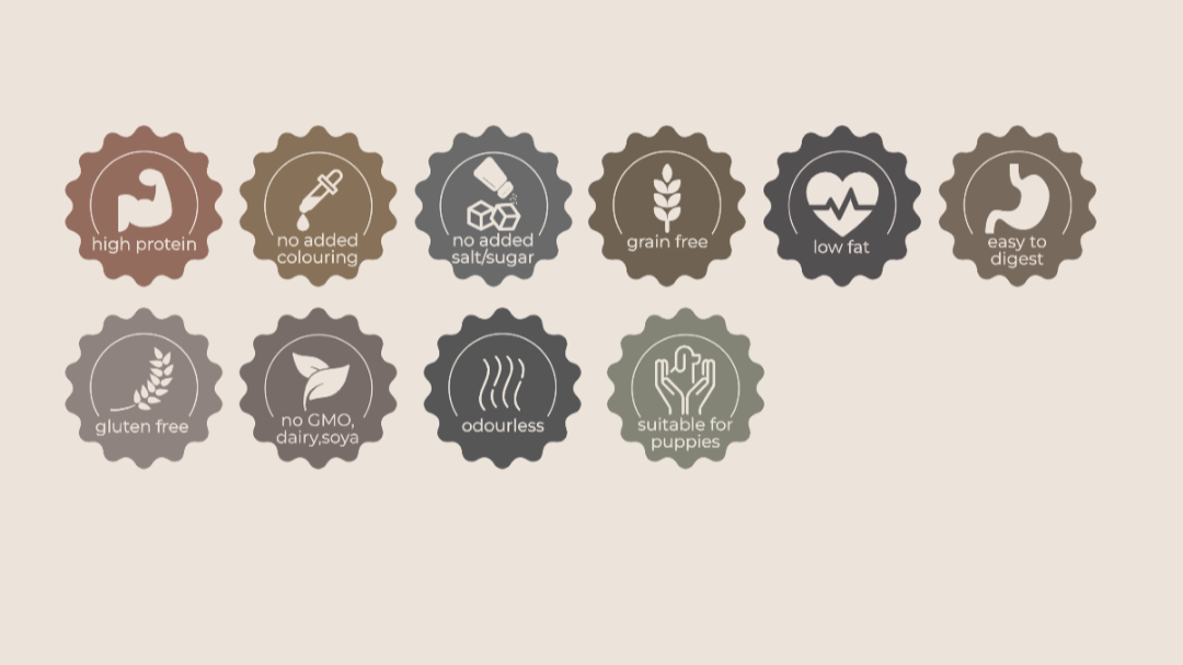 Analytical Constituents: Crude Protein (min) 49.0%, Crude Fat (min) 21.0%, Crude Fibre (max) 6.0%, Moisture (max) 5.0%
